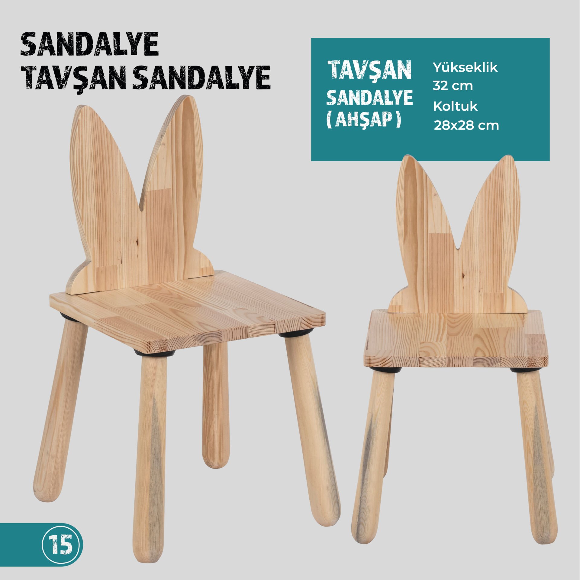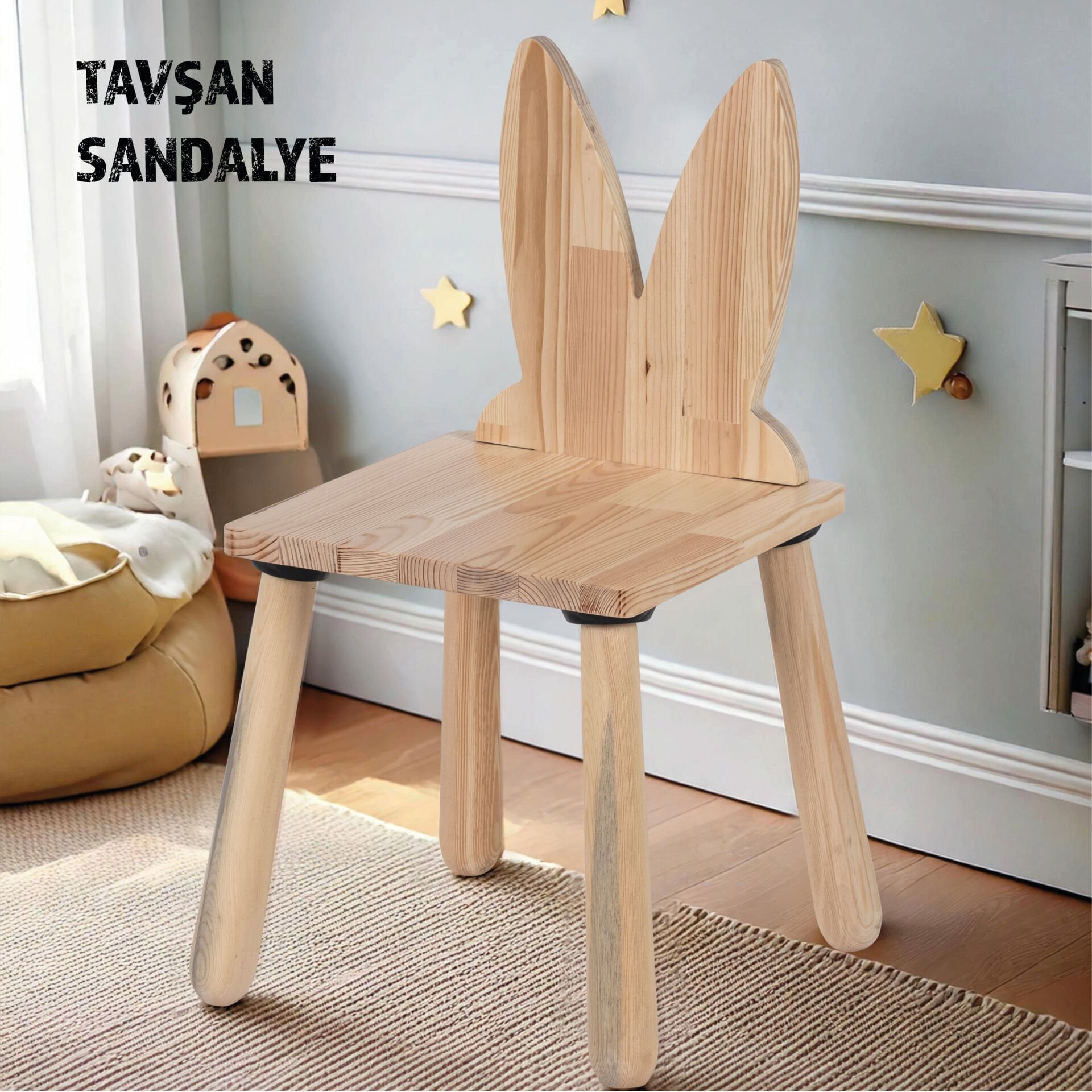 Joykidstoy Doğal Ahşap Çocuk Sandalye Tavşan