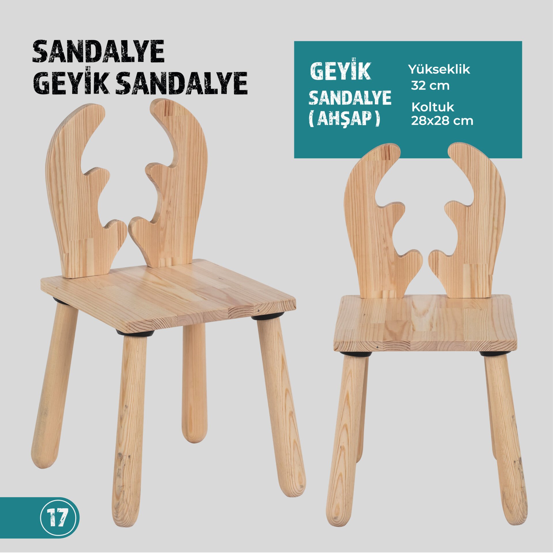 Ölçüleri: Sandalye Yükseklik: 32 cm Sandalye Oturumu : 28cm.28 cm.
