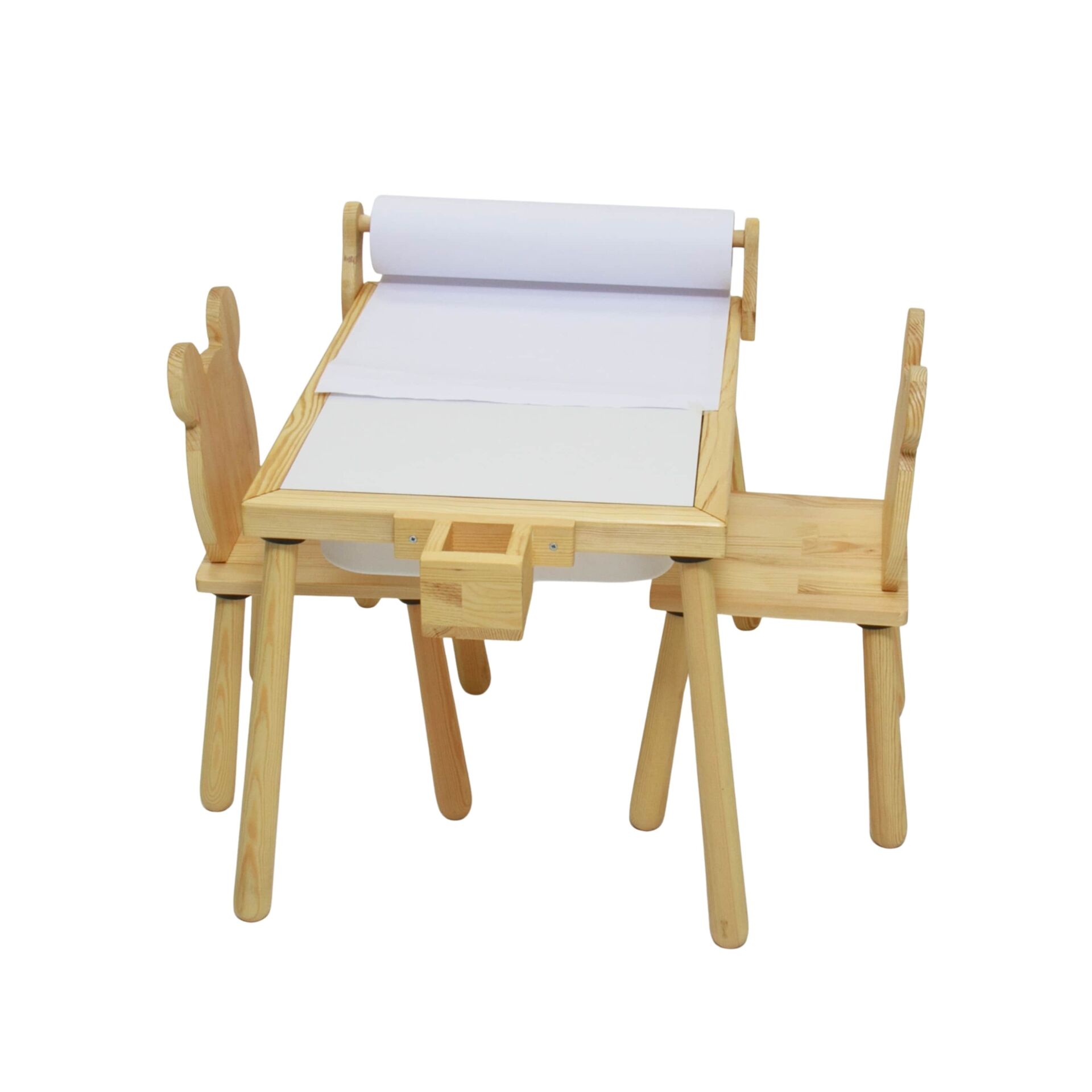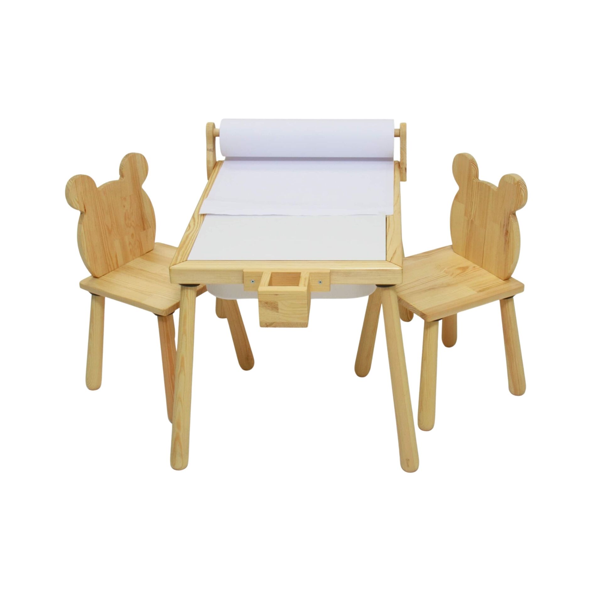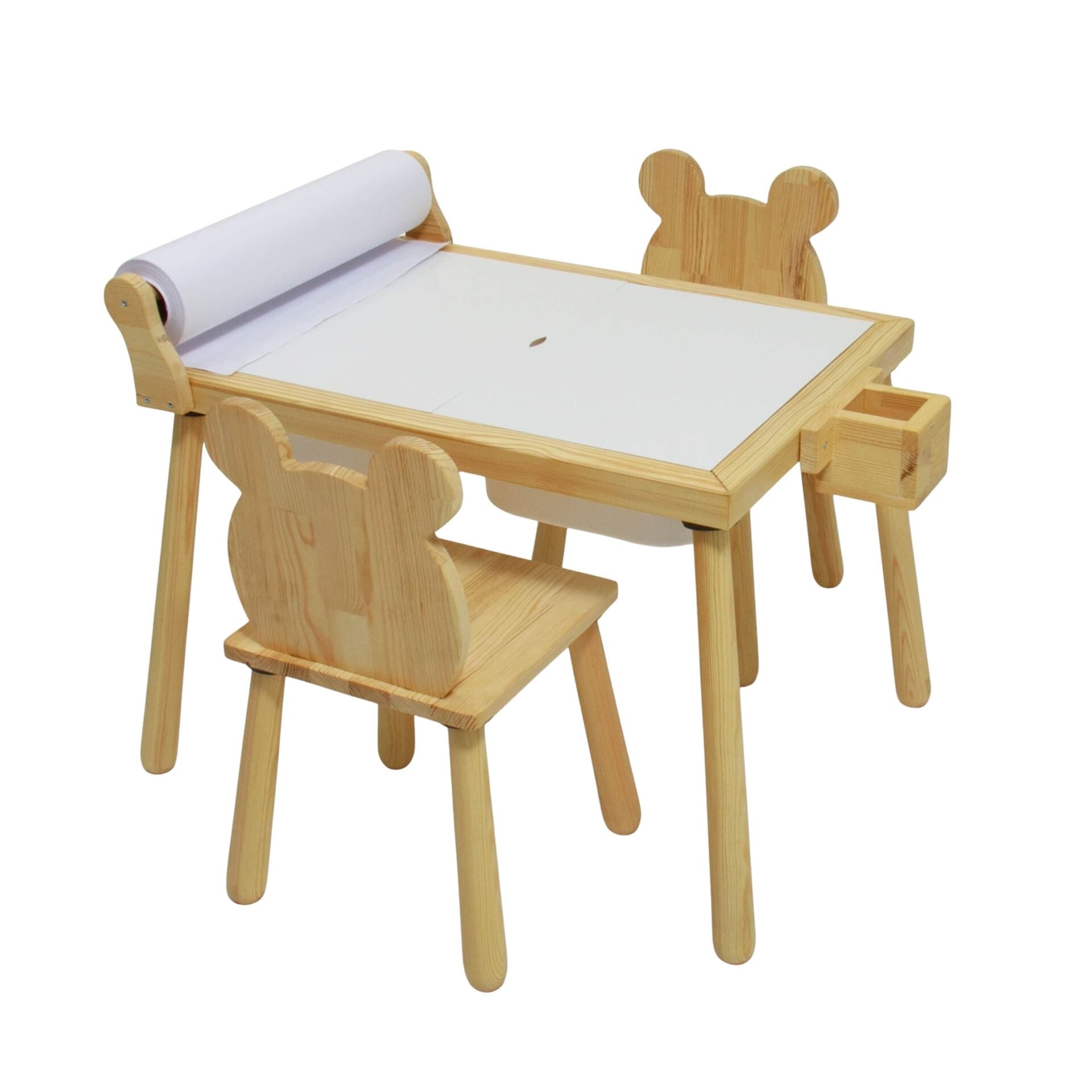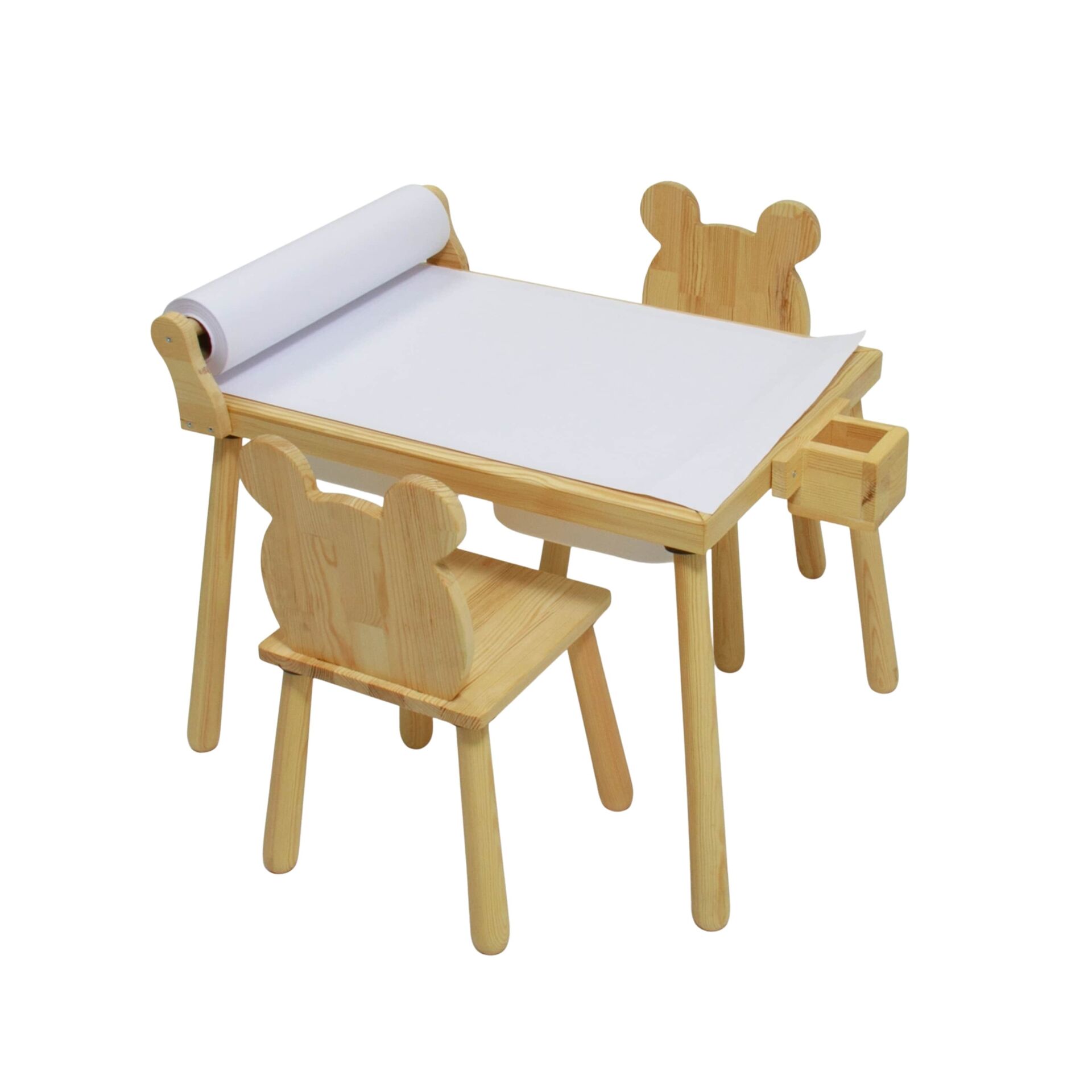 Kutu içeriğinde 1 adet rulo aparatlı aktivite masası 2 adet ayı sandalye bulunmaktadır.