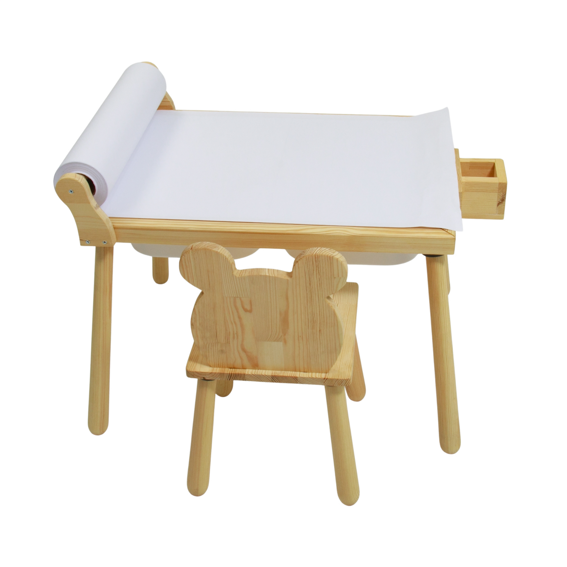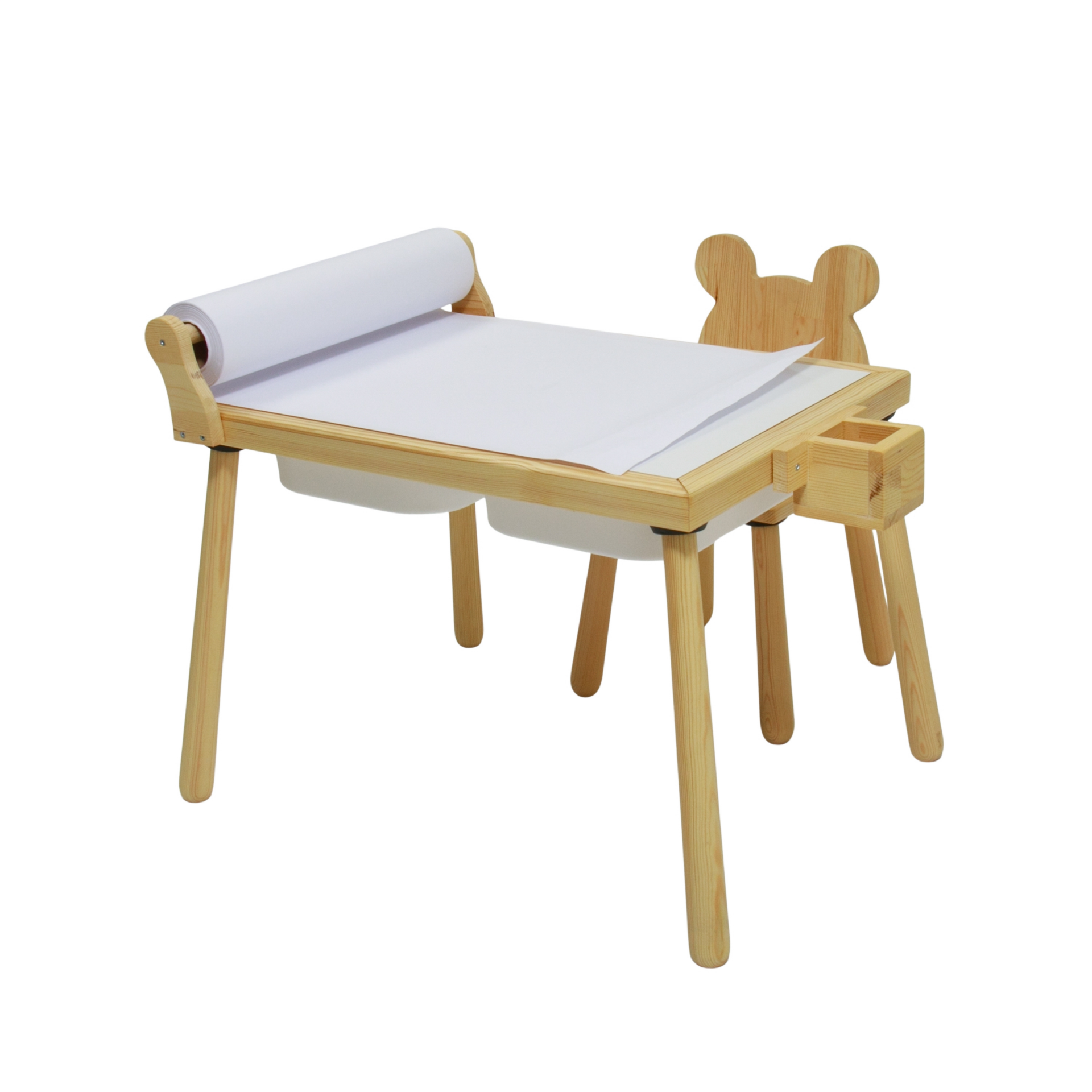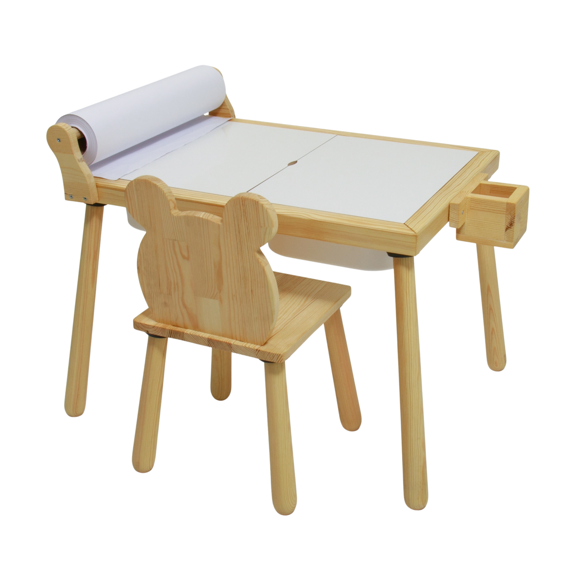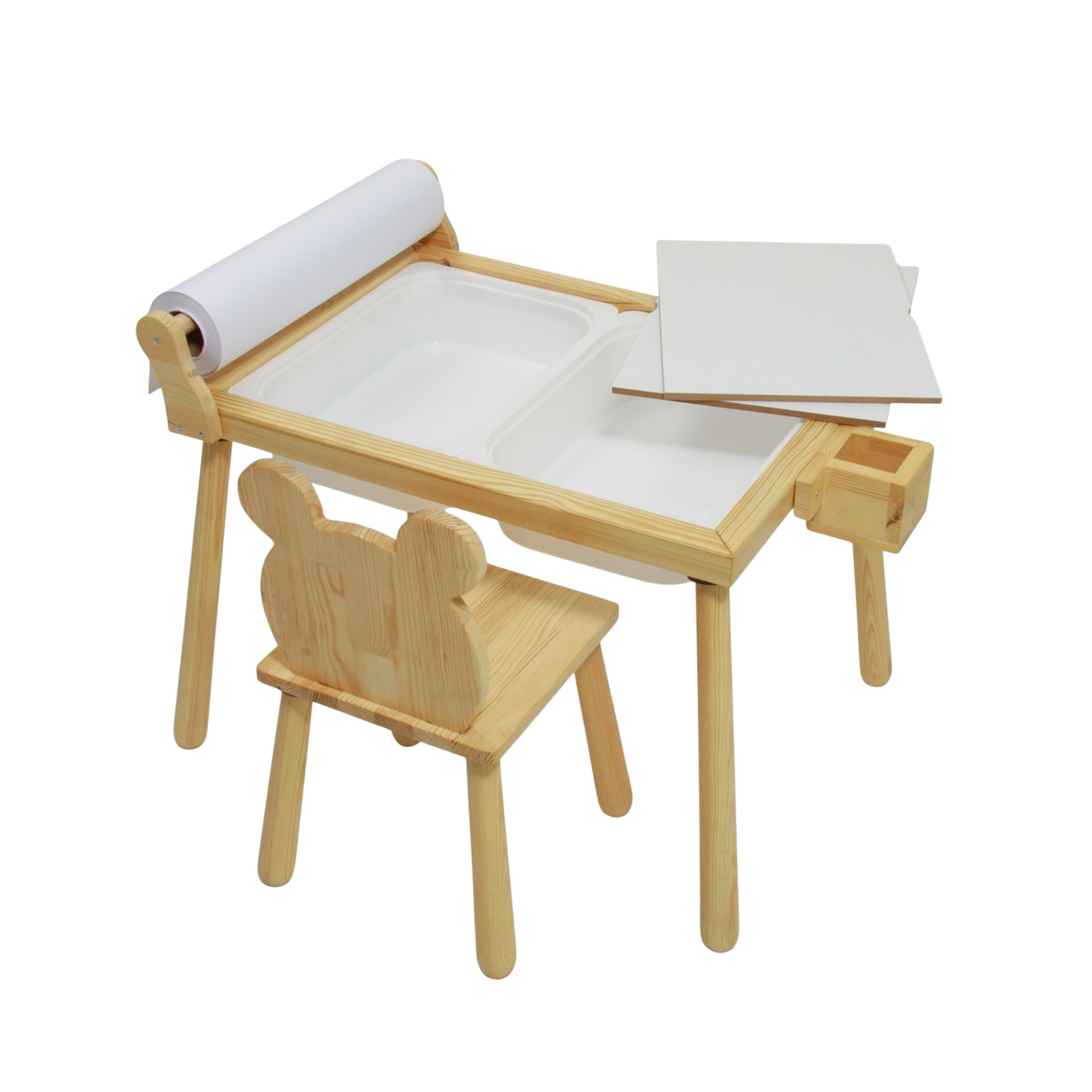 Kutu içeriğinde 1 adet rulo aparatlı aktivite masası 1 adet ayı sandalye bulunmaktadır.